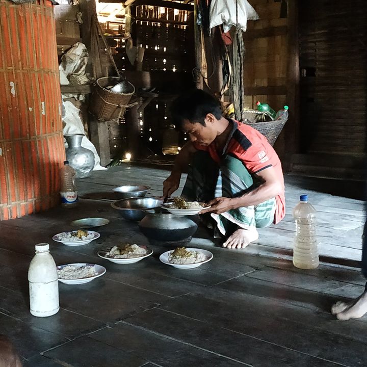 সে রাতে তাঁর বাড়িতে আমি কীভাবে পৌঁছেছি তা মনে নেই। শুধু মানুষের বসতি, মাথার উপরে একটু চালা আর গায়ের নিচে কাঠের ছোয়া পেয়ে আমি ঘুম, যাকে ঘুম না বলে অজ্ঞান বলাটাই বুঝি শ্রেয়! আমার ঘুম ভাঙ্গে (মতান্তরে জ্ঞান ফিরে) পাহাড়ি কচুর তরকারির ঝোল সাথে জুমের ভাত আর পাহাড়ি মরিচের গন্ধে। ডন আমাদের জন্য এ "সামান্য" আয়োজন করলেও মশিউর ভাই বলে, এ হল লাইফের সবচেয়ে "এক্সপেন্সিভ খাবার", আমি তাতেই সায় দিয়ে খেতে বসে যাই।