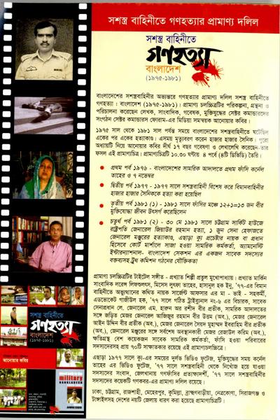 এতোক্ষণ যে প্রমান্য চিত্রটির কথা বললাম সেটির নাম ‘সশস্ত্র বাহিনীতে গণহত্যা (১৯৭৫-৮১)’। এটা নিয়ে আমি গত বছর জরুরী অবস্থার সময় একটা লেখা লিখেছিলাম সামুতে। সশস্ত্র বাহিনীতে গণহত্যা (১৯৭৫-১৯৮১) একটি প্রামাণ্য দলিল সেই প্রামান্য চিত্র অবশেষে আলোর মুখ দেখছে।