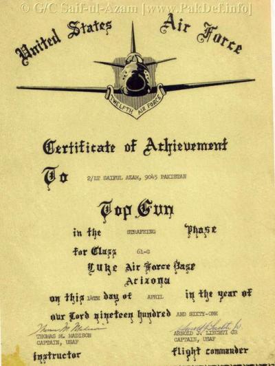সাইফুল আজমকে Cessna T-37 বিমান দ্বারা জেট বিমানের প্রশিক্ষণ প্রদান করা হয়। পরবর্তীতে F-86 Sabre এর উপর উচ্চতর প্রশিক্ষণের জন্য তাকে এরিজোনিয়ার লিউক এয়ারফোর্স বেজে পাঠানো হয়।
