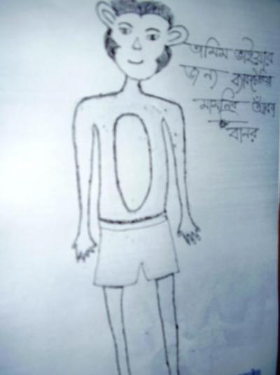 তামিম ভাইয়া আমাকে একটা বানর আঁকতে বলেছিলো। আমি কোনদিন বানর আঁকি নি আজকেই আঁকলাম প্রথম। সবাই দোয়া করবেন আমি যেন আর্ট কলেজে পড়তে পারি।