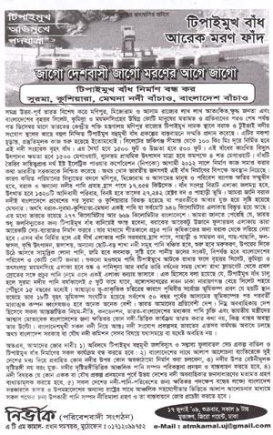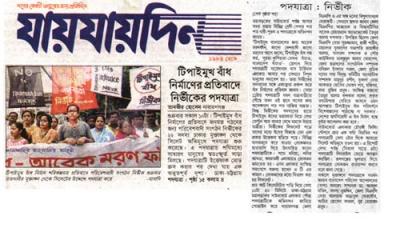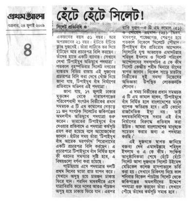 সিলেটের একটি স্থানীয় পত্রিকায় প্রকাশিত সংবাদ