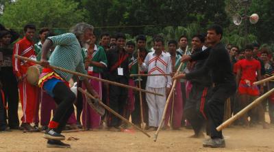 চিত্র ০৩: লাঠি খেলা (ছবি: সিআরএসি ডিজিটাল আর্কাইভ)