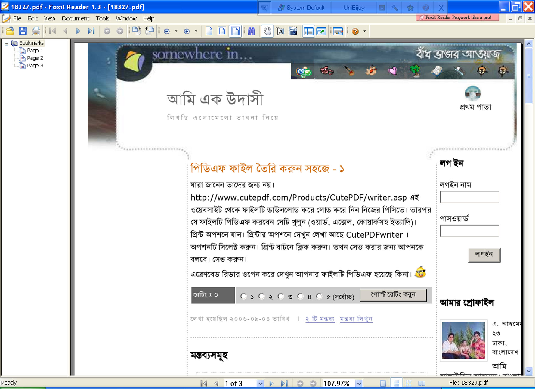 প্রিন্ট অপশনে যান। প্রিন্টার অপশনে দেখুন লেখা আছে CutePDFwriter । অপশনটি সিলেক্ট করুন। প্রিন্ট বাটনে ক্লিক করুন। তখন সেভ করার জন্য আপনকে বলবে।... বাকিটুকু পড়ুন