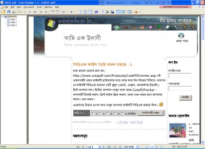 শুভ ভাইয়া, লিখেছেন সামহোয়ার ছাড়া অন্য সব ফাইল উনি পিডিএফ করতে পারেন। সামহোয়ারের বেলায় নাকি সমস্যা হয়। আমরা এই নিচের লিংকে গিয়ে চেষ্টা করি কিভাবে সামহোয়ারের পাতা পিডিএফ ফাইলে পরিণত করা যায়।