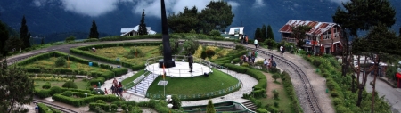 এরপরের স্পট বাতাসিয়া লুপ। অদ্ভুত নাম। দার্জিলিং যাত্রার আগেই ইন্টারনেট ঘেটে আর বন্ধু শাকিল যে কিনা আগে দার্জিলিং ভ্রমণ করে গেছে তার কাছে অনেক সুনাম শুনেছিলাম জায়গাটার। বাতাসিয়া লুপ জায়গাটিতেই দার্জিলিং ট্রয় ট্রেন যেটা কিনা ঘুম আর দার্জিলিংয়ের মধ্যে এখন চলাচল করে, সেটি এখন থেকে ঘুরে। গোল লুপের মতোন লাইনটি ঘুরে আবার ঘুমের দিয়ে যায়। এখানে গোল হয়ে রেল লাইন পাতা আছে আর মাঝখানে গোর্খা আর্মিদের একটি স্মৃতি স্তম্ভ আছে যেটার সাথে সাথে খুব সুন্দর বাগান দিয়ে ঘেরা। আকাশ পরিস্কার থাকলে এখান থেকেও কাঞ্চনজংঘা সৃঙ্গ দেখা যায়। ছবি দেখলে কিছুটা আইডিয়া পাবেন। বাতাসিয়া লুপে কিছুক্ষন বসে ছবিটবি তুলে আমরা আবার গাড়ীর দিকে আগাই। দার্জিলিংয়ের কিছুই আমাদের আর ভালো লাগেনা। মিরিক মানেভঞ্জনে নির্জনতা থেকে এসে হাজার মানুষের ভীরে যত সুন্দর জায়গাই আমাদের সামনে পড়ছে আমাদের মন আগের দুদিনের জায়গাগুলোও স্মৃতিতে কাতর হয়েছিলো। বলে নেয়া ভালো দার্জিলিং বেড়াতে আসা মানুষের কাছে বাতাসিয়া লুপ জায়গাটি অনেক পছন্দ হয় কারন তারা এখানে দার্জিলিংয়ের ঐতিহ্যবাহি গোর্খা পোশাক ভাড়া নিয়ে মজার মজার ছবি তুলে নিয়ে আসে। যেটা আসলেই অনেক মধুর স্মৃতি সংরক্ষিত থাকে। বাতাসিয়া লুপ থেকে রাস্তায় নেমে সবাই চা খাই রাস্তার পাশের দোকান থেকে। ড্রাইভারকে খুজতে আরেকটু সামনে এগিয়ে যেতে হয় কারন রাস্তায় অনেক গাড়ি। দার্জিলিং শহরের কোথায় বেড়াতে গেলে গাড়ি পার্কিং একটা বড় সমস্যা।