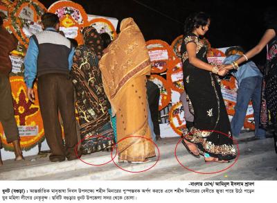 মহিলা লীগের সুন্দরীরা কি জানেন না যে শহীদ মিনারে জুতা পায়ে উঠতে হয়না। একজন এমপির সামনে, থানা আওয়ামী লীগ থেকে শুরু করে দলীয় সবগুলো সংগঠনের সামনে তারা কি করে জুতা পায়ে উঠলেন শহীদ মিনারের পবিত্র বেদীতে? তাদের কি একটু শিখিয়ে দেয়া যেত না। যারা শহীদ মিনারের মতো জায়গার... বাকিটুকু পড়ুন