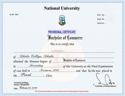জাতীয় বিশ্ববিদ্যালয়ের সার্টিফিকেট