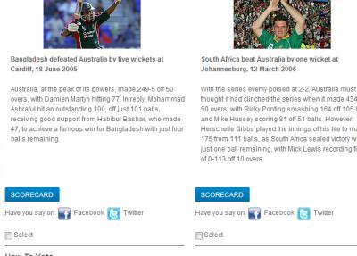 বাংলাদেশ বনাম অষ্ট্রেলিয়ার ম্যাচ সর্বকালের সেরা দশটি ওয়ানডে ম্যাচের তালিকাই স্থান পেয়েছে।