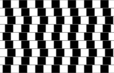 এটাকে বলা হয় ক্যাফে ওয়াল ইল্যুশন (Café wall illusion) । আনুভূমিক রেখা গুলো বাঁকা মনে হলেও ওগুলো কিন্ত সমান্তরাল সরল রেখা !!