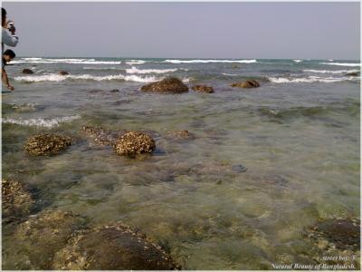 * 2 এ দিকটার জোয়ার এর সময় নামবেন । ১টী নীল তির চিহ্নিত এই রেঞ্জের মধ্যেই আপনি সাগরের নীল জল এর সৌন্দর্য অন্য যে কোন যায়গা থেকে বেশি উপভোগ করতে পারবেন । এই দিকটায় পাথরের দিকে একটু খেয়াল রাখবেন, না হলে হাত পা কেটে যাওয়ার সম্ভাবনা ১০০% । জুতা পরে নামই ভালো ।