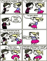 ছেলেটি : ভালো কিন' কথা একদম ঠিক নাই । এক বার বলে ৭ আর পাচেঁ ১২ । আর একবার বলে ৬ আর ৬ বারো । এক বার বলে আট আর চরে বার ।