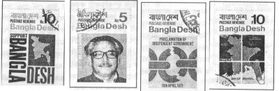 1971 সালের 29 জুলাই একই সাথে কলকাতা ও লন্ডনের বাংলাদেশ মিশন থেকে 8টি ডাকটিকিট প্রকাশ করা হয়। প্রখ্যাত শিল্পী বিমান বসু এগুলোর ডিজাইন করেন।