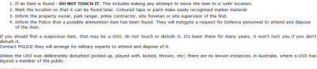 পুলিশ আরো জানায়, এই গ্রেনেড অনেক শক্তিশালী, প্রায় ১০০০ ফিট দূর পর্যন্ত এটিকে নিক্ষেপ করা যেতো। পুলিশ জানায়, যেহেতু এটার কোন ফিউজ ছিলোনা, তাই এটিকে অস্ট্রেলিয়ান সরকারের অবিস্ফরিত গোলাবারুদ সংক্রান্ত অধ্যাদেশ অনুযায়ী সংরক্ষন করতে হয়েছে। যেটাতে বলা হয়েছিলো, “ সাধারনত অবিস্ফরিত গোলাবারুদ বিপজ্জনক এবং গ্রেনেডটিকে অকেজো করতে সকল ব্যবস্থা পরাস্ত হয়েছে সুতরাং এটাকে কিছু সাবধানতা নীতি অবলম্বন পূর্বক বহন করতে হবে। একটু অসাবধানতা কিংবা নাড়াচাড়া করলে এটি বিস্ফোরিত হতে পারে।’’