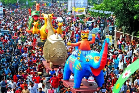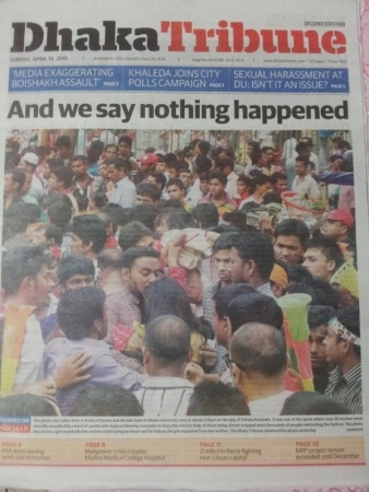 মঙ্গলবার পহেলা বৈশাখে ঢাকা বিশ্ববিদ্যালয়ের টিএসসিতে বর্ষবরণ উৎসবে আগত নারীদের শ্লীলতাহানি করে কতিপয় বখাটে যুবক।