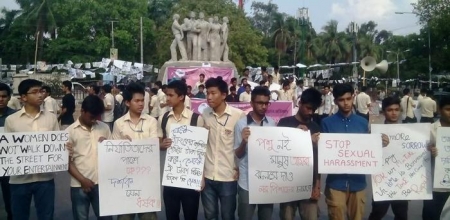 পহেলা বৈশাখে টিএসসিতে নারীদের যৌন হয়রানির প্রতিবাদে ফুঁসে উঠেছে ময়মনসিংহের নারী সমাজ।বাংলাদেশ মহিলা পরিষদ ময়মনসিংহ জেলা শাখার উদ্যোগে গতকাল ১৯ শে এপ্রিল শহরের প্রাণকেন্দ্র শহীদ ফিরোজ-জাহাঙ্গীর চত্বরে একটি মানববন্ধন ও বিক্ষোভ মিছিল অনুষ্ঠিত হয়। দোষী বখাটে যুবকদের আশু গ্রেফতার না করলে ডিসি অফিস ঘেরাও সহ কঠোর আন্দোলনের ঘোষণা দেয়া হয়।