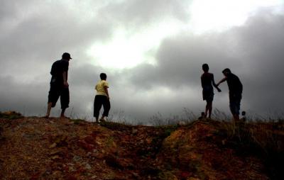 পাহাড়ের চূড়ায় সবাই (একটা লোকাল পিচ্চিও দেখা যাচ্ছে)