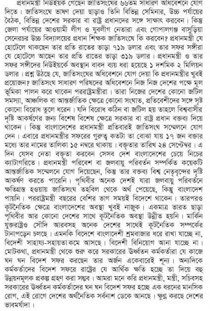 দেশের মানুষ গুলো ও মানুষ হল না , এতো বড় কাজ করলেন , আর বেনপির "মির্জা ফখরুল বললেন" , ‘নিজের ঘরের ভেতরে একটু দেখুন। যে মুহুর্তে আপনার পুলিশের বুটের তলায় নিরীহ পথচারী পিষ্ট হচ্ছে, দুস্থ নারীরা ডাস্টবিন থেকে উচ্ছিষ্ট খাবার তুলে নিয়ে খাচ্ছে, তখন আপনি পৃথিবীতে শান্তি আনার জন্য বিভিন্ন প্রস্তাব দিচ্ছেন।’