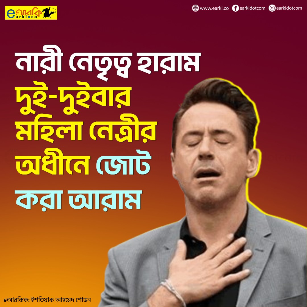 দুই দুইবার যখন নারী নেতৃত্বের নিচে গিয়ে তোরা দাড়াইলি, তখন তোগো এই কথা মনে ছিল না ? শ্লা মুনাফেকের বাচ্চা!
