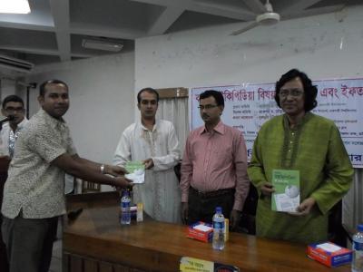 রাজশাহী বিশ্ববিদ্যালয় ক্যারিয়ার ক্লাব আয়োজিত বাংলা উইকিপিডিয়া বিষয়ক কর্মশালা এবং ইফতার মাহফিল...রিসোর্স পারসন নুরুন্নবী চৌধুরী হাছিব তার লেখা "উইকিপিডিয়া কি এবং কেন" বইটি তুলে দিচ্ছেন রাজশাহী বিশ্ববিদ্যালয়ে উপাচার্য মুহাম্মদ মিজানউদ্দিন এবং রাবি ক্যারিয়ার ক্লাবকে।