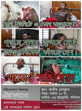 আচ্ছা কেউ কি বলতে পারবেন এই বোমাটা আসলে কার কপালে আছে ? যে কারো কপালে যেকোনো সময় এইরকম একটা বোমা থাকতে পারে ।। এই রকম অনিশ্চয়তা থেকে মুক্তি একমাত্র উপায় প্রতিবাদ করা ।। দেখিয়ে দেয়া যে জনগন এক হয়ে গেলে কারো নিস্তার নাই ।। সেই উদ্দেশেই কেউ একজন এই ইভেন্ট ( থামাও সহিংসতা ) এর তৈরি করেছেন ।। আর আমি একজন ভুক্তভুগি হিসেবে এই ইভেন্টে যোগ দিবো ।। আশা করি একজন মানুষ হিসেবে মানুষ হত্যার প্রতিবাদ আপ্নিও করবেন ।। আর যদি বিড়ালের মত আরাম প্রিয় হন তাহলে না হয় কম্বলের নিচে শুয়ে কোনও এক সময় এইরকম একটা বোমা খাওয়ার অপেক্ষায় থাকবেন ।। সিদ্ধান্ত আপ্নাকেই নিতে হবে ।