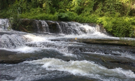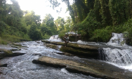 ভোরে ঘুম ভাঙল ৬টার দিকে। তারাতারি উঠে আব্দুলকে তুললাম ঘুম থেকে। মুখ হাত ধুয়েই বেরিয়ে পরলাম কাঙ্খিত রাখাইন ঝর্ণা দেখার জন্ন্যে। মনের মাঝে কিছুটা শংকা, এত কষ্ট করা যে ঝর্ণা দেখার জন্ন্যে, তা কি আসলেই এতটা সুন্দর? যাত্রা শুরু করে বুঝতে পারলাম পুকুরপাড়া বেশ খানিকটা উপরে, ১৫০-২০০ ফুট হতে পারে। পুকুরটি এতই বড় যে পুকুড়ের অপর পাড়ে যে প্রাঞ্জং পাড়া আসে, সেখানে পৌছতেই লেগে গেল প্রায় ২৫ মিনিট। তেমন কোনো বড় পাহাড় পড়ল না পথে। ঝর্ণা পর্যন্ত পৌছতে সময় লাগল ১ ঘণ্টার চেয়ে একটু বেশি। এটি আসলে ঠিক ঝর্ণা না, অনেক গুলো ছোট ছোট ধাপে নেমে আসছে স্বচ্ছ পানির তীব্র স্রোত। অনেক পোস্টার, সিনেমায় এমন দ্রশ্য দেখেছি। তবে নিজের চোখে যা দেখলাম তা এ সবের চেয়ে হাজার কোটি গুনে সুন্দর, কোণো ভাবেই এই সৌন্দর্য নিজের চোখে না দেখলে বোঝানো অসম্ভব।ভয়াবহ পিচ্ছিল পানির নিচের পাথর। অনেক সাবধানে খালটি পার হয়ে অপর পাশে গিয়ে ঠিক বুঝে উঠতে পারছিলাম না কি করব। ভয়ংকর সুন্দর কথাটির এর চেয়ে বাস্তবসম্মত উদাহরণ এই ক্ষুদ্র জীবনে আমি খুব একটা দেখি নি। হথাৎ মনে হল আমার পশ্চদেশে কিছু একটা কামড় দিয়েছে। প্রথমে গ্রাজ্য না করলেই একটু পরে হাত দিয়ে অনুভব করলাম পিচ্ছিল কিছু একটা। প্যান্টটা কিছুটা নামিয়ে আব্দুলকে বললাম দেখ মনে হ্য় জোঁক ধরেছে। ওতো হাসতেহাসতে গড়াগড়ি। বলে আমি এত বার বান্দরবনে আসছি, কখনও এখানে জোঁক ধরে নি, কোনোজনের এখানে ধরতে দেখি নি, শুনিও ও নি। শেষমেষ জোঁকটিকে লবণ দিয়ে সরানো হোলো। বেশ কিছুটা দুর গেলাম হেঁটেহেঁটে। খুব সাবধানে হাঁটতে হচ্ছিল, এতটাই পিচ্ছিল। ক্যামেরার অভাব বোধ করছিলাম প্রচণ্ড ভাবে। সাথে ছিল, তবে একটা ছবি তুলতেই চার্জ শেষ। বাধ্য হয়ে মোবাইল দিয়ে ছবি তুললাম। বিস্কুট খেলাম সেখানে। প্রায় দেড় ঘন্টা ছিলাম রাখাইন ঝর্ণার পারে। বাধ্য হয়ে ফেরার পথ ধরলাম; সময় নাই, তাই। ফেরার আগে দু চোখ ভরে শেষ বারের মত দেখে নিলাম সৃষ্টিকর্তার অনাবিল সৃষ্টি। তিনটি ছবি দিচ্ছি কিঞ্চিত ধারনা করার জন্ন্যে।