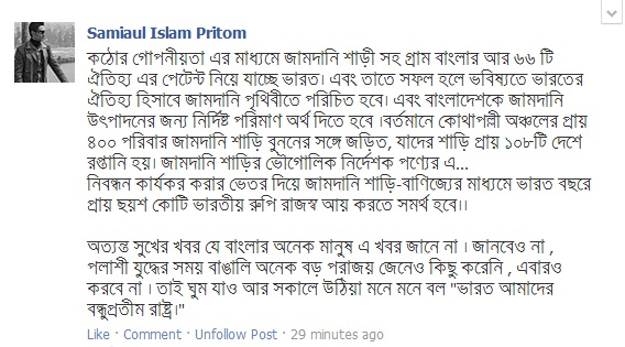 জামদানি শাড়ী সহ গ্রাম বাংলার আর ৬৬ টি ঐতিহ্য এর পেটেন্ট নিয়ে যাচ্ছে ভারত