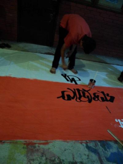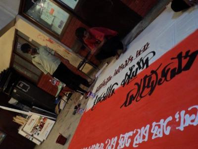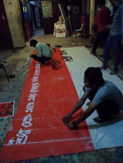 একদিকে চলছে রুদ্রর স্কেচের কাজ আরেকদিকে ব্যানারের শিরোনামের কাজ