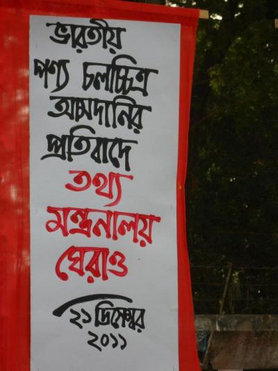২৩ ডিসেম্বর, শুক্রবার, যেসব প্রেক্ষাগৃহে ভারতীয় পণ্য চলচ্চিত্র প্রদর্শিত হবে সেসব প্রেক্ষাগৃহের সামনে প্রতিবাদ ও অবস্থান ধর্মঘটের উদ্দেশ্যে জমায়েত- সকাল ১১ টা। জাতীয় জাদুঘর, শাহবাগ।