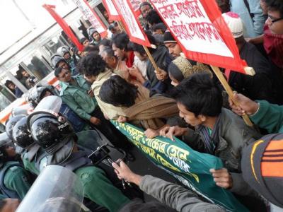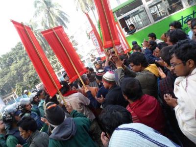 ৯দফা দাবী শোনানোর মধ্য দিয়েই শেষ হয় সমাবেশ।এর পর তথ্য মন্ত্রণালয় অভিমুখে মিছিল শুরু করলে কিছুদুর পরেই পুলিশ বাঁধা দেয় মিছিলে।