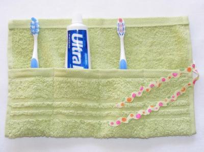 টাওয়েল দিয়ে খুব সহজেই তৈরি করা যায় প্রয়োজনীয় জিনিস যেমন ব্রাশ, পেষ্ট ইত্যাদি রাখার ওয়াল পকেট