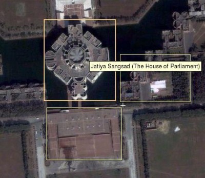 সংযুক্ত ছবিটি সংসদ ভবনের স্যাটেলাইট ছবি, উইকিম্যাপিয়া ও গুগল আর্থের সৌজন্যে।