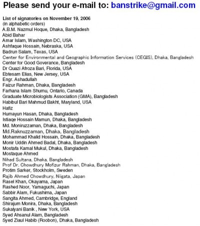 তাই আমরা ক-জন বন্ধু মিলে একটা উদ্দ্যোগ নিয়েছি আমাদের এই আবেদন বর্তমান সরকারের কাছে পৌছে দেবার। কিন্তু আমাদের আরো অনেক অনেক বন্ধুর প্রয়োজন। তাই সকল বন্ধুদের কাছে আমাদের বিনীত নিবেদন এই যে, আপনারা, আপনার এবং আপনার বন্ধুও পরিবারের সদস্যদের নাম ই-মেইল করে জানান।