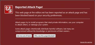 আর দি-এডিটর এর সাইটে ক্লিক করলে আসেঃ Reported Attack Page!