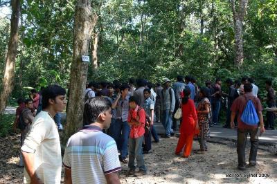 লাউয়াছড়ার নাম শুনেছি, সংরক্ষিত বনাঞ্চল, আদিবাসিদের আবাস (প্রধানত খাসিয়া) এবং প্রকৃত পশুপাখি অর্থাৎ যেগুলো সত্যিকার অর্থেই এই বনের বাসিন্দা সেই পশুগুলোকে এখানে প্রাকৃতিক ভাবে রাখা হয়েছে। তাছাড়া বোনাস হিসাবে সিলেটের চা বাগান তো আছেই। আমার শ্যালিকা বুয়েটের উচু ক্লাসে পড়ে, ও ই ফোন করে জানলো। গিন্নিকে রাজি করিয়ে ভোর ৬:০০ এর মধ্যেই হাজির হলাম বুয়েটের শহীদ মিনারে। কথাছিলো বাস ছাড়বে ৬:৩০ টায়। আমরা বুয়েটে পৌছে একটু হকচকিয়ে গেলাম বিরাট জন সমাবেশ একটা বাস ব্যানার-ট্যানার লাগিয়ে দাড়িয়ে আছে, সিট বাম্পার, ছাদ, ইঞ্জিন কভার সব মিলিয়ে এত লোকের জায়গা হবে না।