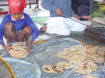 রান্না এবং খাবার পরিবেশনায় এমন কী ছোট ছোট শিখ শিশুরাও অংশ নেয়।