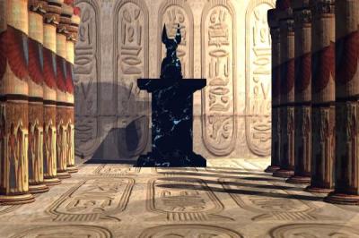 আনুবিস এর প্রার্থনাগৃহের অভ্যন্তরভাগ। এখানে সাধারণ জনগনের প্রবেশ নিষেধ ছিল। তারা কেবল উপহার নিয়ে প্রার্থনাগৃহের মূল ফটক অবধি আসতে পারত। পুরোহিত উপহার গ্রহন করত।