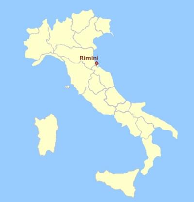 ইতালির মানচিত্রে রিমিনির অবস্থান।