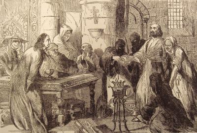 নাইট টেম্পলারদের গ্র্যান্ড মাষ্টার জ্যাক দ্য মোলেই এর জিজ্ঞাসাবাদ চলছে। সাত বছর অমানুষিক নির্যাতনের পর তাকে হত্যা করা হয়। তার আগে সে স্বীকার করে যে সে বাফোমেত নামে শয়তানের উপাসনা করত।