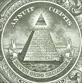 মার্কিন এক ডলার নোটে ইলুমিনাতির অন্যতম প্রতীক। নীচে লাতিন বাক্যের মানে- ‘নতুন এক বিশ্বব্যবস্থা’। পরবর্তী পর্বে এ বিষয়ে আলোচনা করব।