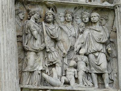 আর্চ অভ ট্রাজান। বর্বরদের সঙ্গে সম্রাট ট্রাজান।