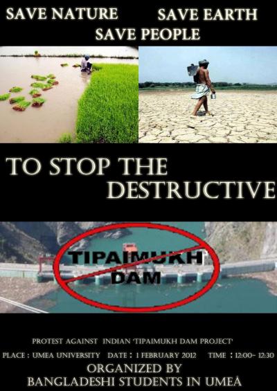সুইডেনের উমিয়া বিশ্ববিদ্যালয়ের বন্ধুরা আগামীকাল টিপাইমুখ বাঁধের বিরুদ্ধে মানব বন্ধন করবে, তাঁদের জন্য শুভ কামনা