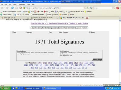 আজ সকালে ওয়েব সাইটে ক্লিক করেই দেখলাম... স্বাক্ষরের সংখ্যা- ১৯৭১