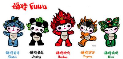অলিম্পিকের মাস্কটে আসি। এবারের অলিম্পিকের মাস্কট কিন্তু ৫টা। ছবির মধ্যেই দেখতে পাচ্ছেন- এদের নাম হচ্ছে 'bei bei' ,'jing jing', 'huan huan', 'ying ying', 'ni ni' ।চাইনিজরা আদর করে বাচ্চাদের নাম দুবার উচ্চারন করে আমরা যেমন আদর করে বলি "ওরে আমার কুটু কুটু, পুটু পুটু"। মাস্কটের নামের মাঝে আসলে আপনাকে বলছে 'Bei jing huan ying ni' মানে বেইজিং এ আপনাকে স্বাগতম।