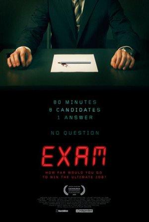 Exam নাম শুনেই মনে হওয়া স্বাভাবিক মুভির প্রধান বিষয় পরীক্ষা।আসলেই তাই।একটি জবের লিখিত পরীক্ষাকে কেন্দ্র করেই পুরো মুভিটা।মুভির শুরুতেই দেখা যায় ৮ জন মানুষ এক রুমে ঢুকছে।সবাই ফর্মাল ড্রেসে।৮ জনের মাঝে একটি বিষয় কমন আর সেটি হলো সবাই ভীত এবং বিধধস্ত।রুমে কেবলমাত্র ৮ টি টেবিল এবং ৮ টি চেয়ার।সবাই বসার পরে দেখতে পায় তাদের সামনে একটি করে কাগজ এবন্দ পেন্সিল রাখা।কিছুক্ষন পরে পরীক্ষক রুমে ঢুকেন এবং তাদেরকে পরীক্ষার নিয়ম বলেন।নিয়মের মাঝে প্রধান হলো তারা কখনই তাদের Exam Paper ইচ্ছাকৃত অথবা দুর্ঘটনাবশত নষ্ট করতে পারবে না।তাদের জন্য শুধুমাত্র একটি প্রশ্ন আছে এবং এই একটি প্রশ্নই তাদের পরীক্ষা দিতে হবে।আর এজন্য তারা পাবে ৮০ মিনিট।সময় যাবার সাথে সাথে তাদের সবাইকে একত্রিত হয়ে কাজ করতে হবে এবং একে অপরকে বিশ্বাস করতে হবে।আর এর ফলাফল একটি মাল্টি ন্যাশনাল কোম্পানীতে উচ্চ পদবীর চাকরি।