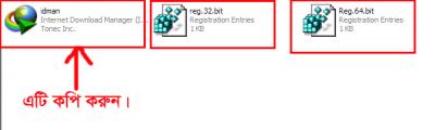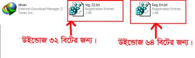 এরপর crack ফোল্ডারের ভেতরে আবারো ঢুকুন। সেখানে দেখবেন reg.32.bit ও Reg.64.bit নামে আরো দুইটা ফাইল। যেটা আশা করছি আপনি এর আগেও লক্ষ্য করেছেন। আপনার উইন্ডোজের ভার্সন যদি ৩২ বিট এর হয় তো reg.32.bit ফাইলে ক্লিক করুন এবং উইন্ডোজের ভার্সন যদি ৬৪ বিট এর হয় তো Reg.64.bit ফাইলে ক্লিক করুন (আপনার উইন্ডোজের বিট অনুসারে যে কোন একটাতে ক্লিক করুন)। এবং যে মেসেজ বক্স আসবে, সেটা Yes/OK করুন। কাজ শেষ!! আপনার আইডিএম এখন অনির্দিষ্ট কাল পর্যন্ত ব্যবহার করতে পারবেন!!!