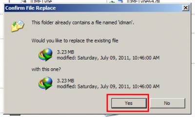 এরপর যে ফোল্ডারে আইডিএম টি ইনস্টল করেছেন সেখানে গিয়ে ঐ কপি করা ফাইলটি পেষ্ট করে দিন। পেষ্ট করলে একটা মেসেজ বক্স দেখাবে। আপনি মেসেজ বক্সে বিনা দ্বিধায় Yes চাপুন এবং বের হয়ে আসুন!!