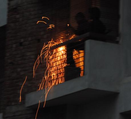 সাধ না মিটিলো, আশা না পুরিলো - ফায়ারওয়ার্কসের ছবি তোলার আশা ছিলো। কিন্তু শেষ পর্যন্ত আর যাওয়া হয় নাই সংসদ ভবন এলাকায়। সেটা হয়েছে কিনা তাও জানিনা। ৪/৫ দিন আগে প্র্যাকটিস হিসবে সামনে এক বিল্ডিংএ এয়েল্ডিং ওয়ার্কনের ছবি তুলেছিলাম কিছু। তারই একটা।