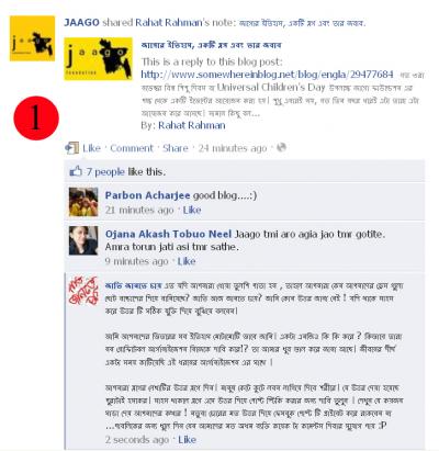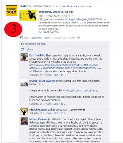 ছবি ২. অন্যদিকে আমি আমার ফেসবুক থেকে অনায়াসে কমেন্ট করতে পারছি এবং আমার জন্য "জাগো" এর পেইজ এর ওয়াল টি ওপেন আছে। এইটা কতটা হাস্যকর হতে পারে। জাগো এর কাছে জানতে চাই কয়জন মানুষ কে মুখ ব্নধ করতে পারবেন আপনাদের পেইজ একসেস ব্ধ করে ?!