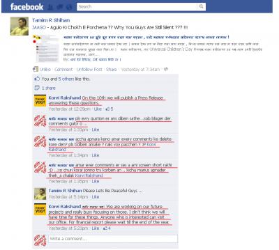 ছবি ৪. এই ছবি তে দেখা যাচ্ছে " জাতি জানতে চায় " এর কমেন্টস্ কে ডিলিট করে দেয়া হয়েছে।