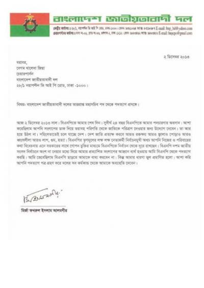 মীর্জা ফখরুল ইসলাম আলমগীর কি আসলেই পদত্যাগ করেছেন ?
